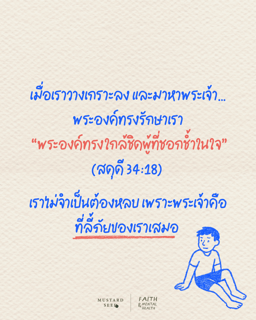 เพราะหลายครั้งเราดูเหมือน“ไม่รู้สึกแต่จริงๆ แล้วเรากำลัง“หลบหลายครั้งเราหัวเราะออกไป แต่ข้างใน“ร้องไห้เงียบๆปฏิเสธความรู้สึก  โยนอารมณ์ให้คนอื่น ปลอมความรู้สึก หนีไปในโลกส่วนตัว บางครั้งเวลาเราเจ็บปวด เสียใจ หรือรู้สึกผิด สมองของเราจะหาวิธีป้องกันเพื่อไม่ให้เรารู้สึกแย่เกินไป วิธีนี้เรียกว่า Defense Mechanism (กลไกป้องกันทางจิตใจ) มันเกิดขึ้นอัตโนมัติ เหมือนเป็นเกราะที่ใจสร้างขึ้นเพื่อให้เราอยู่รอดในสถานการณ์ยากๆ เหมือนตอนดาวิดเคยทำผิดกับบัทเชบา และเลือกจะซ่อนและปิดบังความผิดด้วยวิธีต่างๆ (2 ซามูเอล 11) เขาวางแผนให้เอาอุรียาห์สามีของบัทเชบากลับบ้านเพื่อปกปิดเรื่องท้อง และเมื่อแผนไม่สำเร็จ เขาก็สั่งให้เอาอุรียาห์ไปอยู่แนวหน้าสงครามจนถูกฆ่า  นี่คือตัวอย่างของการใช้กลไกป้องกันที่อันตราย แทนที่จะเผชิญความจริง ดาวิดกลับพยายามปกปิดและโยนปัญหาออกไป แต่สิ่งเหล่านี้ยิ่งทำให้บาปและความเจ็บปวดหนักขึ้น จนวันที่พระเจ้าส่งนาธันมาตักเตือน ดาวิดจึงยอมสารภาพและร้องต่อพระเจ้าว่าเพราะข้าพระองค์ทราบถึงการละเมิดของข้าพระองค์แล้ว และบาปของข้าพระองค์อยู่ต่อหน้าข้าพระองค์เสมอสดุดี 51:3