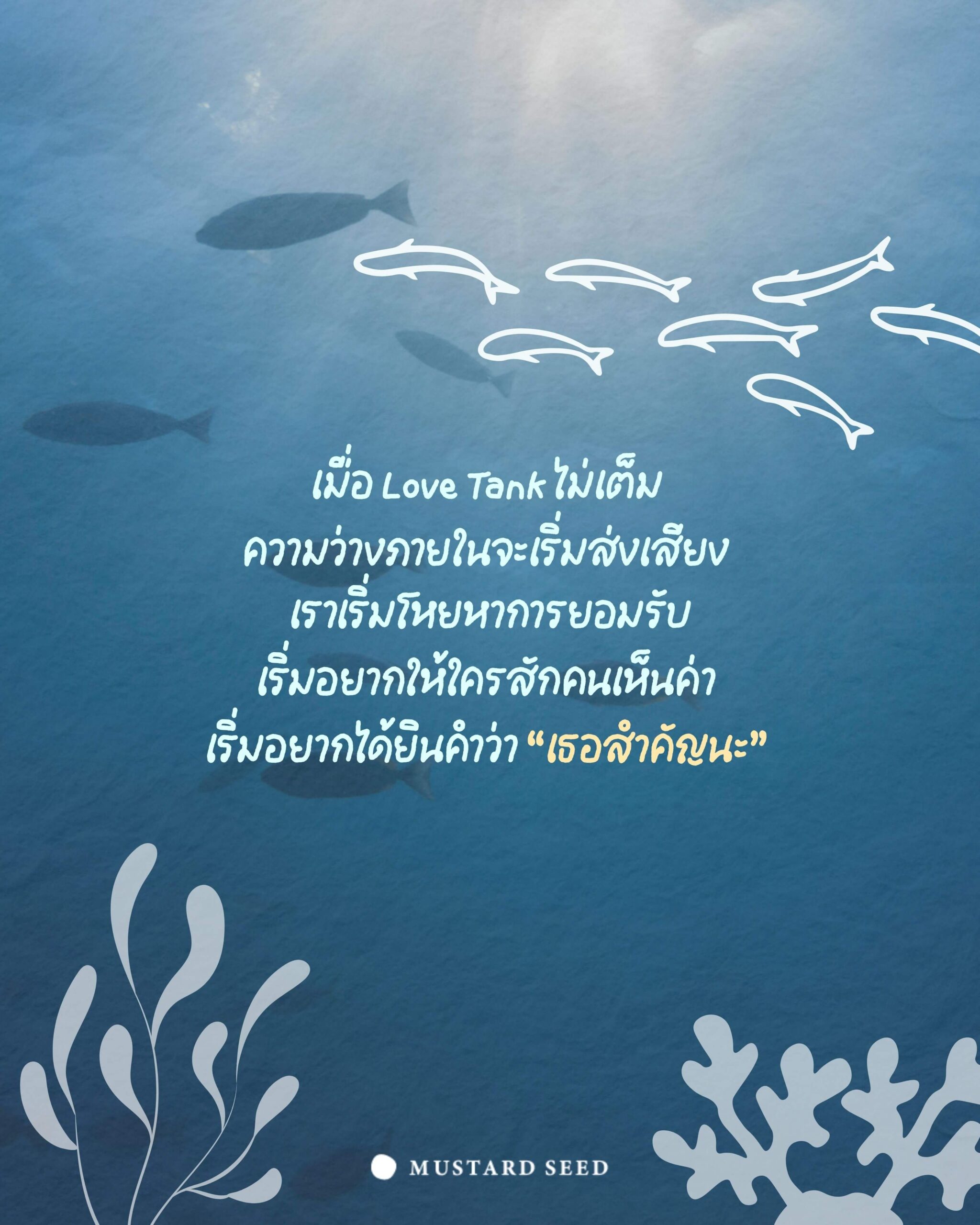 เมื่อเราใช้ชีวิตไปพร้อมกับ Love Tank ที่ไม่เต็ม ความว่างภายในจะเริ่มส่งเสียง เราเริ่มโหยหาการยอมรับ เริ่มอยากให้ใครสักคนเห็นค่า เริ่มอยากให้มีใครสักคนบอกเราว่า “เธอสำคัญนะ”