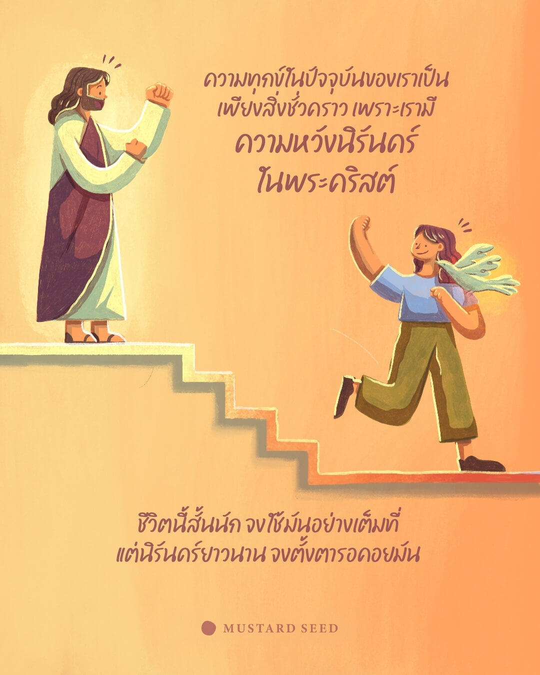 ให้เรายึดมั่นในความจริงนี้ไว้ ความหวังของเรานั้นมั่นคงและเป็นนิรันดร์ แม้ต้องเผชิญกับความเจ็บปวด การต่อสู้ และความยากลำบาก เราก็สามารถพักใจในพระสัญญาของพระเจ้าได้ ✨ชีวิตนิรันดร์กับพระเยซู✨ พระองค์ทรงช่วยเราให้รอด ไถ่เรา และรับเราเป็นบุตร ในพระองค์ เราพบสันติสุขและความหวังที่ไม่มีวันเลือนหาย